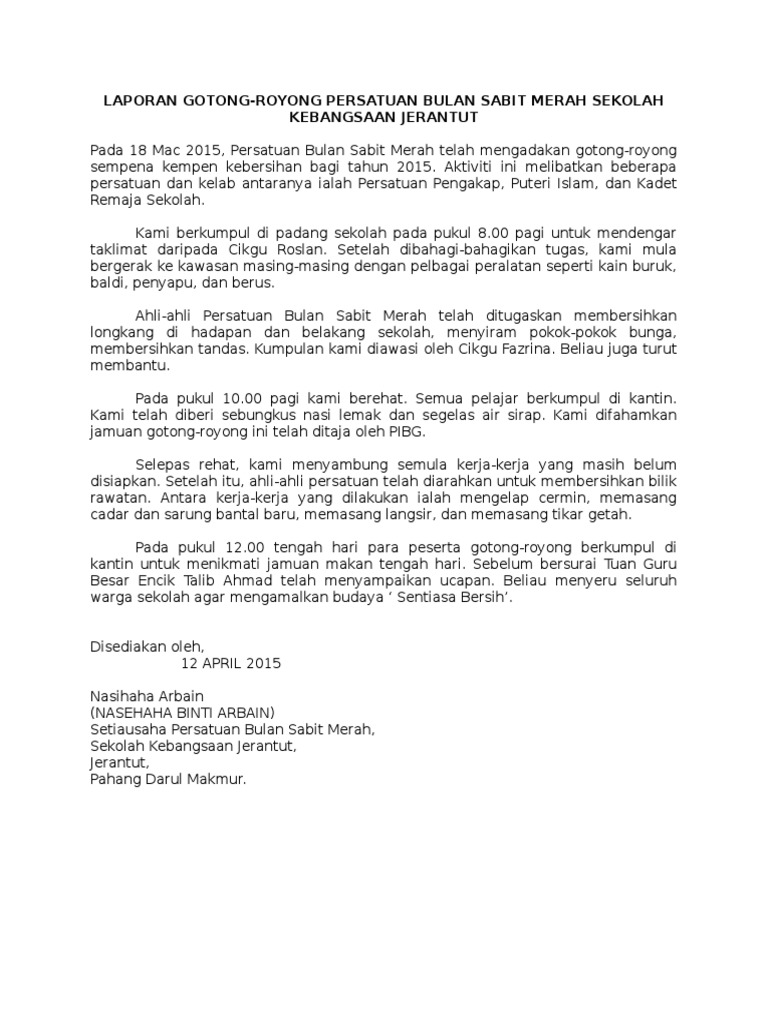 ٢٨ جمادى الآخرة ١٤٤٣ هـ. Related posts to contoh laporan gotong royong di sekolah contoh laporan gotong royong di sekolah 2016 12 19t22 49 00 08 00 rating. Sebagai contoh aktiviti yang boleh diadakan secara bergotong royong ialah membersihkan kawasan taman Pada pukul 1100 pagi aktiviti gotong royong ditamatkan.